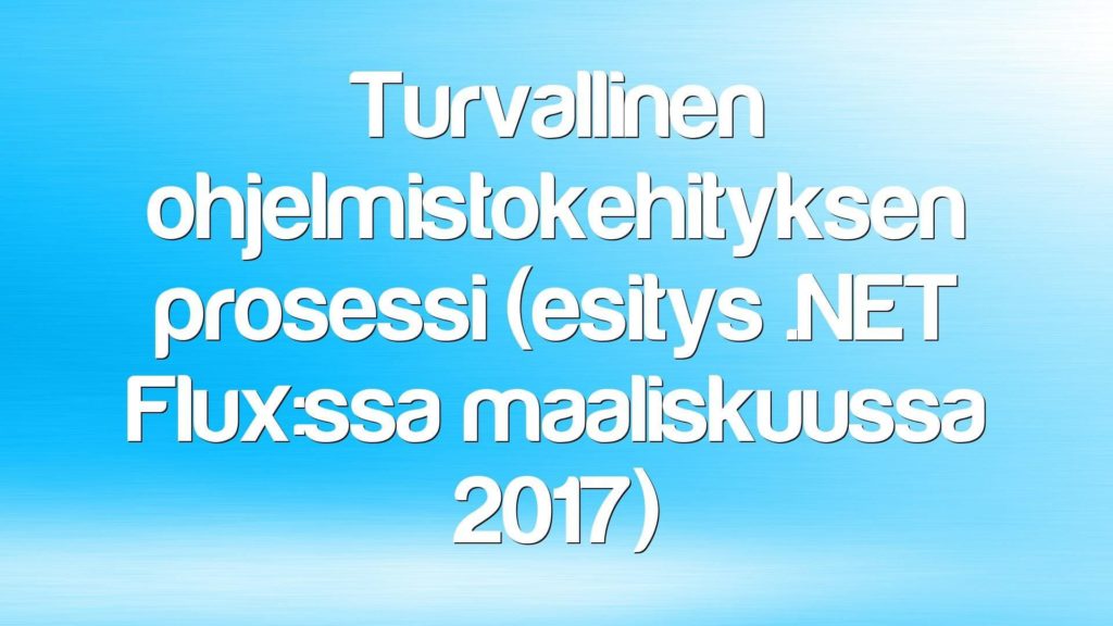 Turvallinen ohjelmistokehityksen prosessi (esitys .NET Flux:ssa maaliskuussa 2017) Turvallisuutta koskevia periaatteita (esitys .NET Flux:ssa maaliskuussa 2017)